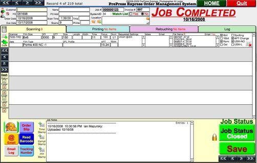PrePress Express Order Management System, Developed in house by Ian Mazursky ©2007-2019